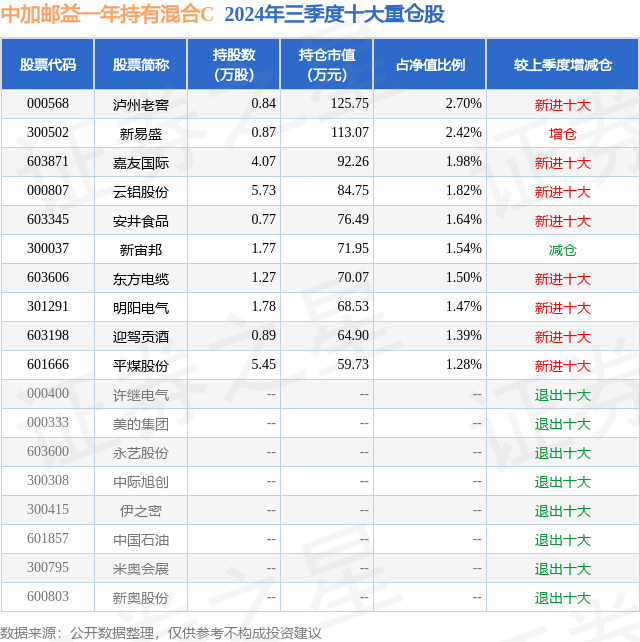 证券之星消息,日前中加邮益一年持有混合C基金公布三季报,2024年三季度最新规模0.03亿元,季度净值涨幅为1.0%。