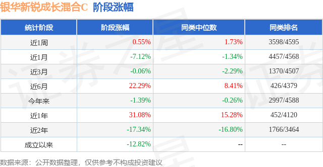 从业绩表现来看,银华新锐成长混合C基金过去一年净值涨幅为20.57%,在同类基金中排名374/3979,同类基金过去一年净值涨幅中位数为5.4%。而基金过去一年的最大回撤为-29.68%,成立以来的最大回撤为-56.73%。