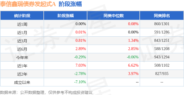 从业绩表现来看,泰信鑫瑞债券发起式A基金过去一年净值涨幅为4.78%,在同类基金中排名405/1063,同类基金过去一年净值涨幅中位数为4.0%。而基金过去一年的最大回撤为-4.8%,成立以来的最大回撤为-15.35%。