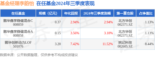 证券之星消息,日前鹏华鑫享稳健混合C基金公布三季报,2024年三季度最新规模0.37亿元,季度净值涨幅为2.94%。