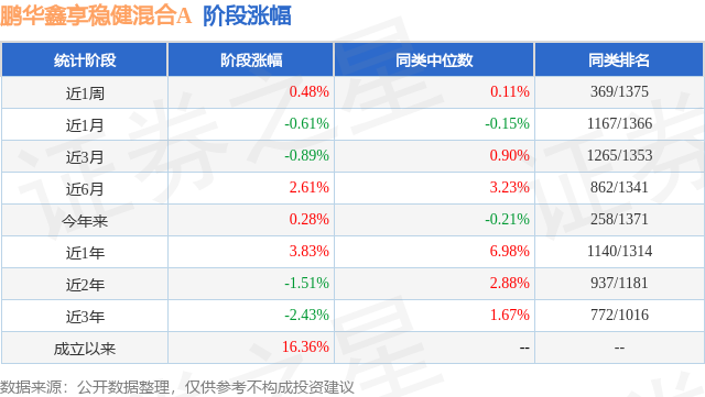 从业绩表现来看,鹏华鑫享稳健混合A基金过去一年净值涨幅为3.07%,在同类基金中排名914/1322,同类基金过去一年净值涨幅中位数为4.43%。而基金过去一年的最大回撤为-3.67%,成立以来的最大回撤为-8.15%。