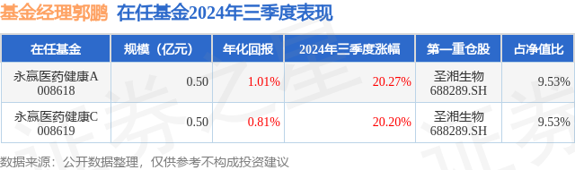 证券之星消息,日前永赢医药健康C基金公布三季报,2024年三季度最新规模0.5亿元,季度净值涨幅为20.2%。