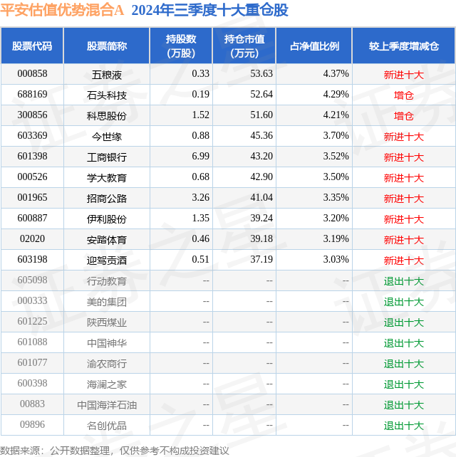 证券之星消息,日前平安估值优势混合A基金公布三季报,2024年三季度最新规模0.02亿元,季度净值涨幅为-0.03%。