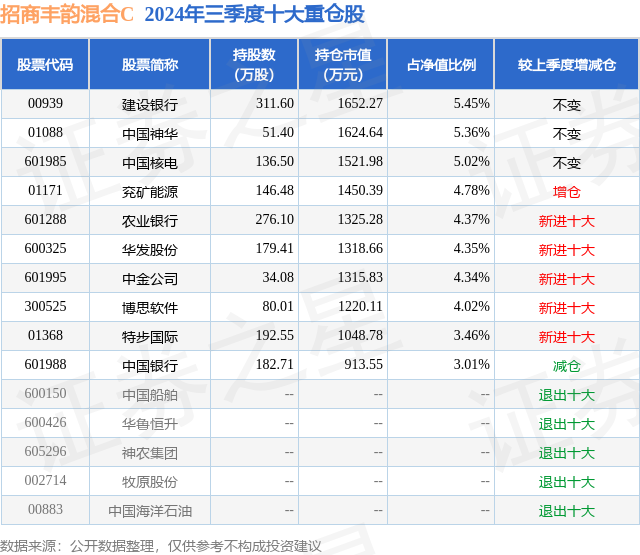 证券之星消息,日前招商丰韵混合C基金公布三季报,2024年三季度最新规模0.54亿元,季度净值涨幅为-1.09%。