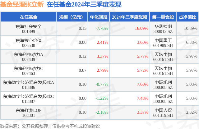 证券之星消息,日前东海科技动力A基金公布三季报,2024年三季度最新规模0.12亿元,季度净值涨幅为5.77%。