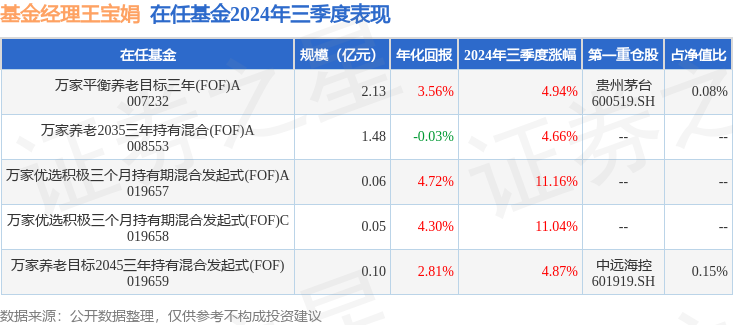 证券之星消息,日前万家平衡养老目标三年(FOF)A基金公布三季报,2024年三季度最新规模2.13亿元,季度净值涨幅为4.94%。