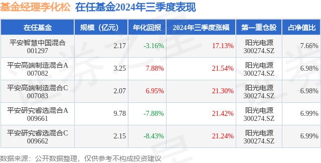 证券之星消息,日前平安高端制造混合C基金公布三季报,2024年三季度最新规模2.07亿元,季度净值涨幅为21.3%。