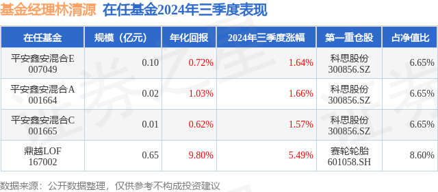 证券之星消息,日前平安鑫安混合E基金公布三季报,2024年三季度最新规模0.1亿元,季度净值涨幅为1.64%。