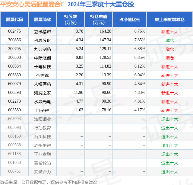 证券之星消息,日前平安安心灵活配置混合C基金公布三季报,2024年三季度最新规模0.05亿元,季度净值涨幅为-0.17%。