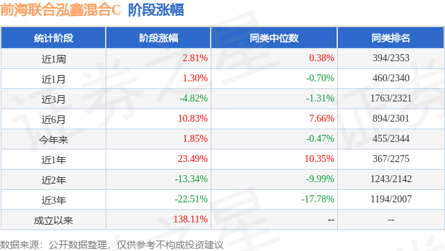 从业绩表现来看,前海联合泓鑫混合C基金过去一年净值涨幅为10.73%,在同类基金中排名580/2261,同类基金过去一年净值涨幅中位数为5.1%。而基金过去一年的最大回撤为-20.83%,成立以来的最大回撤为-49.58%。