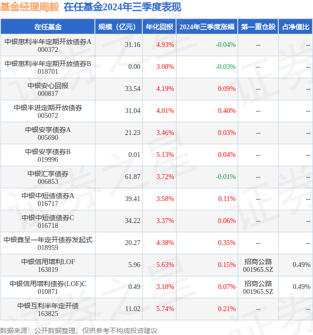 证券之星消息,日前中银信用增利债券(LOF)C基金公布三季报,2024年三季度最新规模0.49亿元,季度净值涨幅为0.07%。