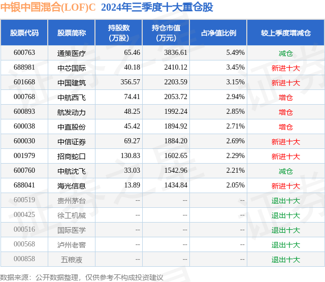 证券之星消息,日前中银中国混合(LOF)C基金公布三季报,2024年三季度最新规模0.0亿元,季度净值涨幅为13.13%。