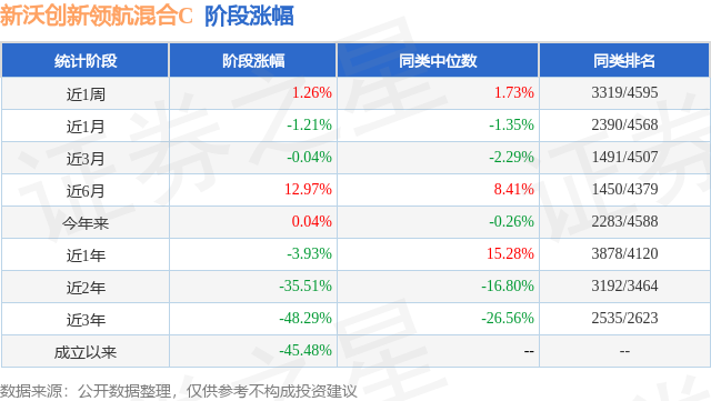 从业绩表现来看,新沃创新领航混合C基金过去一年净值涨幅为-7.45%,在同类基金中排名3622/3979,同类基金过去一年净值涨幅中位数为5.4%。而基金过去一年的最大回撤为-38.56%,成立以来的最大回撤为-65.37%。