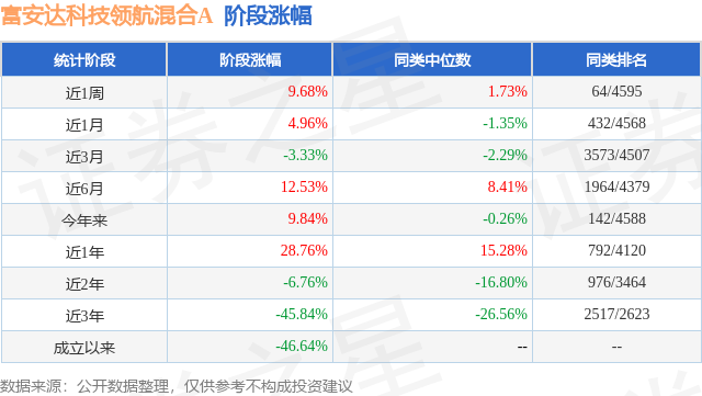 从业绩表现来看,富安达科技领航混合A基金过去一年净值涨幅为18.65%,在同类基金中排名384/3979,同类基金过去一年净值涨幅中位数为5.4%。而基金过去一年的最大回撤为-23.81%,成立以来的最大回撤为-73.19%。