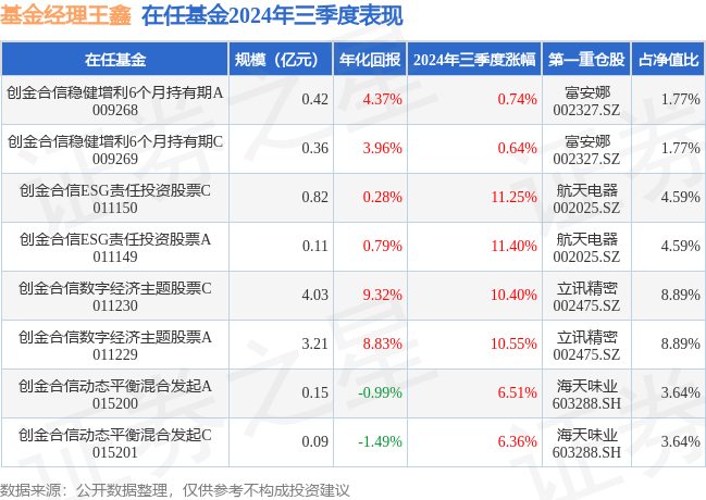 创金合信稳健增利6个月持有期C现任基金经理为王鑫 龚超 刘润哲。其中在任基金经理王鑫已从业3年又300天,2021年11月15日正式接手管理创金合信稳健增利6个月持有期C,任职期间累计回报为12.01%。目前还管理着8只基金产品(包括A类和C类),其中本季度表现最佳的基金为创金合信ESG责任投资股票A(011149),季度净值涨幅为11.4%。