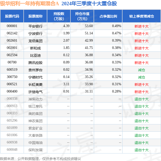 证券之星消息,日前银华招利一年持有期混合A基金公布三季报,2024年三季度最新规模0.86亿元,季度净值涨幅为1.15%。