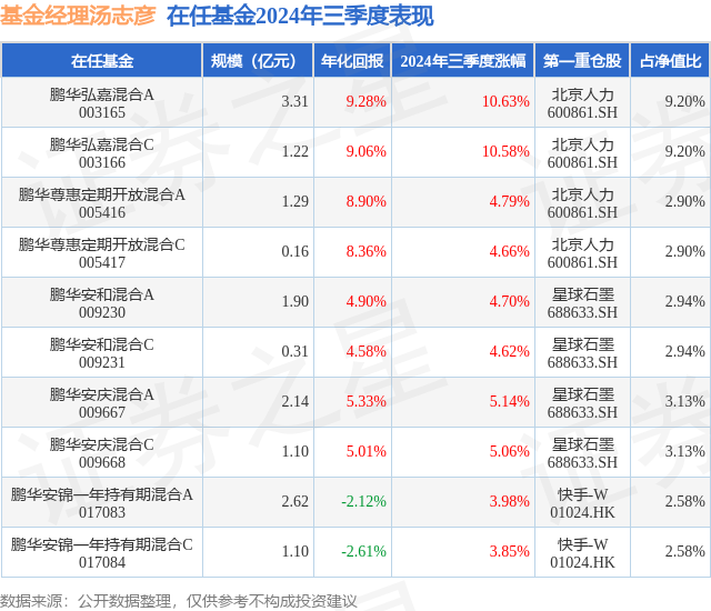 证券之星消息,日前鹏华安庆混合C基金公布三季报,2024年三季度最新规模1.1亿元,季度净值涨幅为5.06%。