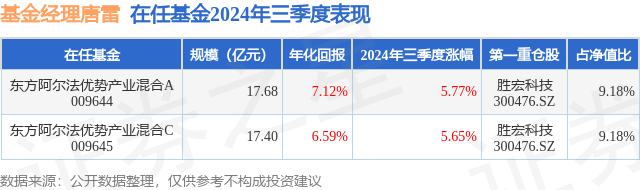 证券之星消息,日前东方阿尔法优势产业混合C基金公布三季报,2024年三季度最新规模17.4亿元,季度净值涨幅为5.65%。