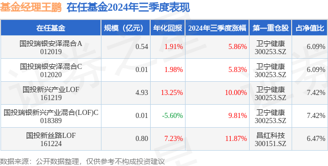 国投新兴产业LOF现任基金经理为王鹏。其中在任基金经理王鹏已从业9年又199天,2023年5月30日正式接手管理国投新兴产业LOF,任职期间累计回报为-6.36%。目前还管理着5只基金产品(包括A类和C类),其中本季度表现最佳的基金为国投新丝路LOF(161224),季度净值涨幅为11.87%。