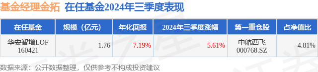 证券之星消息,日前华安智增LOF基金公布三季报,2024年三季度最新规模1.76亿元,季度净值涨幅为5.61%。