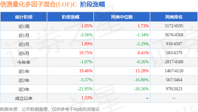 从业绩表现来看,信澳量化多因子混合(LOF)C基金过去一年净值涨幅为8.18%,在同类基金中排名1616/3979,同类基金过去一年净值涨幅中位数为5.4%。而基金过去一年的最大回撤为-21.94%,成立以来的最大回撤为-50.03%。