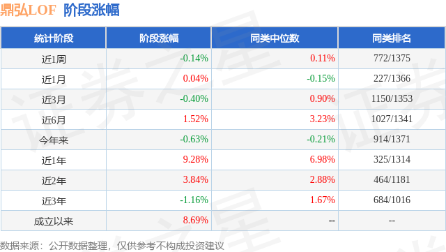 从业绩表现来看,鼎弘LOF基金过去一年净值涨幅为9.74%,在同类基金中排名83/1322,同类基金过去一年净值涨幅中位数为4.43%。而基金过去一年的最大回撤为-9.17%,成立以来的最大回撤为-15.33%。
