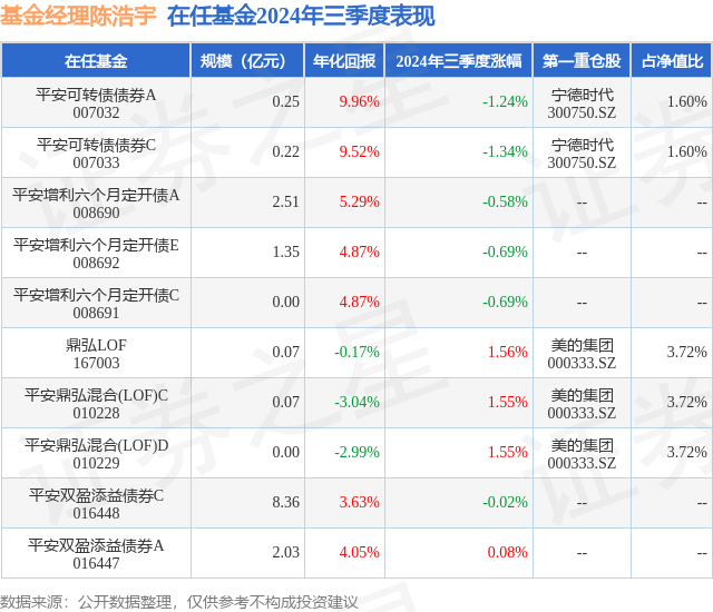 鼎弘LOF现任基金经理为陈浩宇。其中在任基金经理陈浩宇已从业1年又79天,2023年9月22日正式接手管理鼎弘LOF,任职期间累计回报为8.8%。目前还管理着10只基金产品(包括A类和C类),其中本季度表现最佳的基金为鼎弘LOF(167003),季度净值涨幅为1.56%。