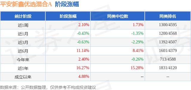 从业绩表现来看,平安新鑫优选混合A基金过去一年净值涨幅为6.59%,在同类基金中排名1848/3979,同类基金过去一年净值涨幅中位数为5.4%。而基金过去一年的最大回撤为-22.92%,成立以来的最大回撤为-22.92%。