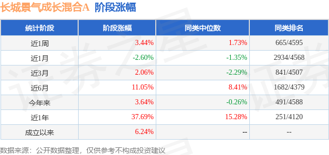 从业绩表现来看,长城景气成长混合A基金过去一年净值涨幅为6.26%,在同类基金中排名1646/3979,同类基金过去一年净值涨幅中位数为5.4%。而基金过去一年的最大回撤为-42.17%,成立以来的最大回撤为-42.17%。