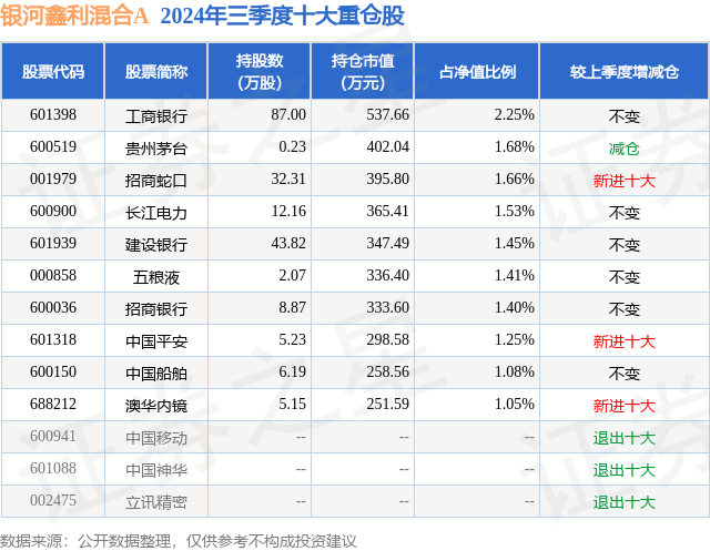 证券之星消息,日前银河鑫利混合A基金公布三季报,2024年三季度最新规模2.37亿元,季度净值涨幅为5.1%。