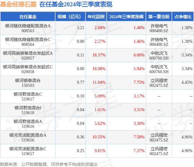 证券之星消息,日前银河灵活配置混合A基金公布三季报,2024年三季度最新规模0.36亿元,季度净值涨幅为7.58%。