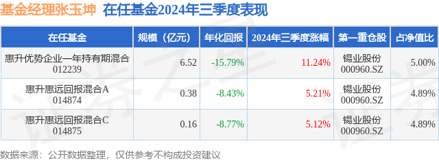 证券之星消息,日前惠升惠远回报混合A基金公布三季报,2024年三季度最新规模0.38亿元,季度净值涨幅为5.21%。