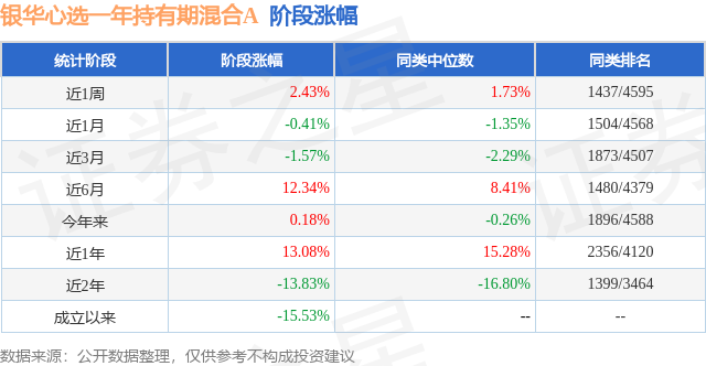 从业绩表现来看,银华心选一年持有期混合A基金过去一年净值涨幅为1.21%,在同类基金中排名2600/3979,同类基金过去一年净值涨幅中位数为5.4%。而基金过去一年的最大回撤为-34.18%,成立以来的最大回撤为-41.35%。