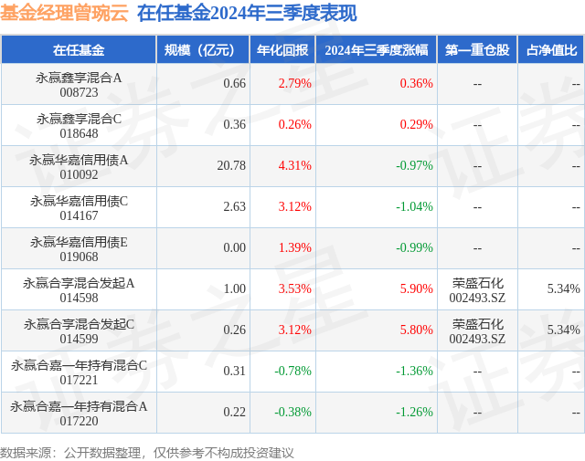 证券之星消息,日前永赢合享混合发起C基金公布三季报,2024年三季度最新规模0.26亿元,季度净值涨幅为5.8%。