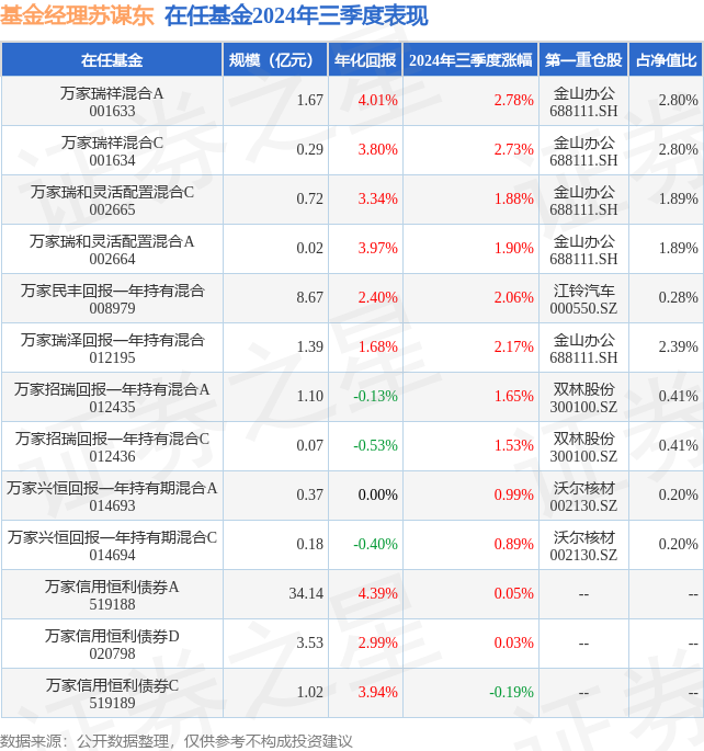 证券之星消息,日前万家兴恒回报一年持有期混合C基金公布三季报,2024年三季度最新规模0.18亿元,季度净值涨幅为0.89%。
