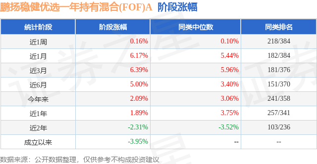 证券之星消息,日前鹏扬稳健优选一年持有混合(FOF)A基金公布三季报,2024年三季度最新规模0.8亿元,季度净值涨幅为5.14%。