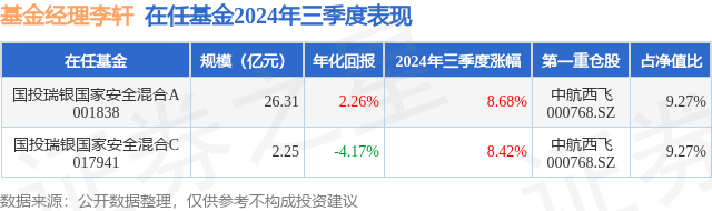 证券之星消息,日前国投瑞银国家安全混合C基金公布三季报,2024年三季度最新规模2.25亿元,季度净值涨幅为8.42%。
