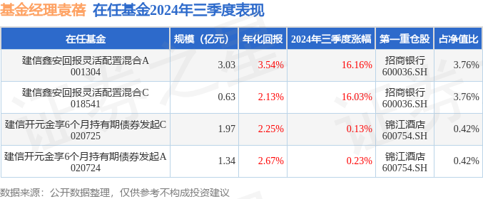 证券之星消息,日前建信鑫安回报灵活配置混合C基金公布三季报,2024年三季度最新规模0.63亿元,季度净值涨幅为16.03%。