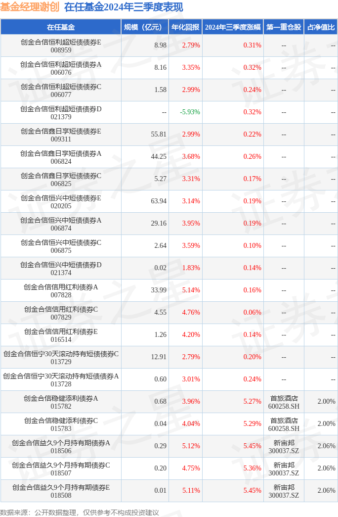 证券之星消息,日前创金合信益久9个月持有期债券A基金公布三季报,2024年三季度最新规模0.29亿元,季度净值涨幅为5.45%。