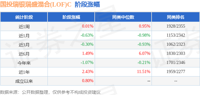 从业绩表现来看,国投瑞银瑞盛混合(LOF)C基金过去一年净值涨幅为1.25%,在同类基金中排名1503/2261,同类基金过去一年净值涨幅中位数为5.1%。而基金过去一年的最大回撤为-2.41%,成立以来的最大回撤为-3.5%。