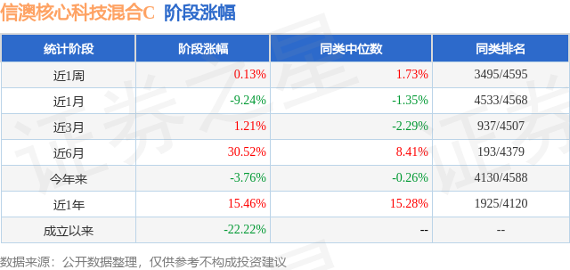 从业绩表现来看,信澳核心科技混合C基金过去一年净值涨幅为-6.09%,在同类基金中排名3531/3979,同类基金过去一年净值涨幅中位数为5.4%。而基金过去一年的最大回撤为-42.4%,成立以来的最大回撤为-49.68%。