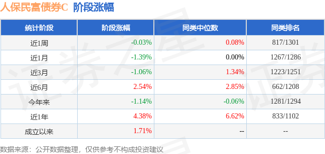 从业绩表现来看,人保民富债券C基金过去一年净值涨幅为4.49%,在同类基金中排名456/1063,同类基金过去一年净值涨幅中位数为4.0%。而基金过去一年的最大回撤为-2.59%,成立以来的最大回撤为-3.71%。