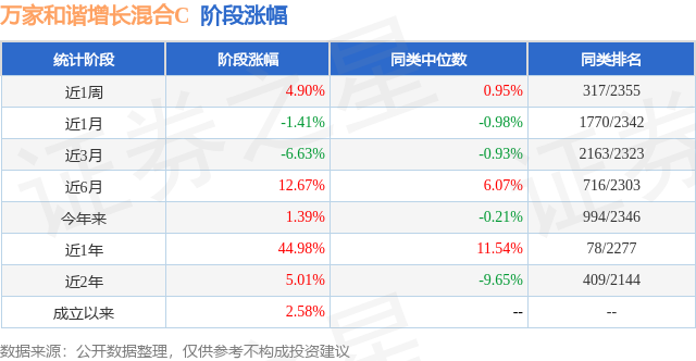 从业绩表现来看,万家和谐增长混合C基金过去一年净值涨幅为47.23%,在同类基金中排名16/2261,同类基金过去一年净值涨幅中位数为5.1%。而基金过去一年的最大回撤为-22.55%,成立以来的最大回撤为-37.86%。