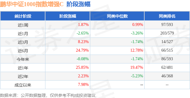 从业绩表现来看,鹏华中证1000指数增强C基金过去一年净值涨幅为6.49%,在同类基金中排名347/457,同类基金过去一年净值涨幅中位数为10.83%。而基金过去一年的最大回撤为-26.01%,成立以来的最大回撤为-31.46%。