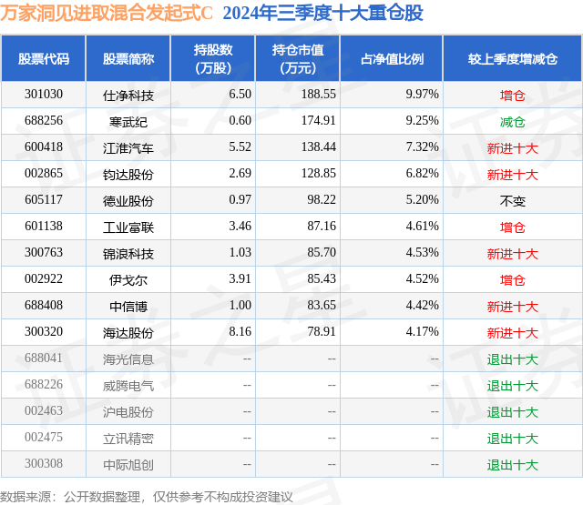 证券之星消息,日前万家洞见进取混合发起式C基金公布三季报,2024年三季度最新规模0.07亿元,季度净值涨幅为11.14%。