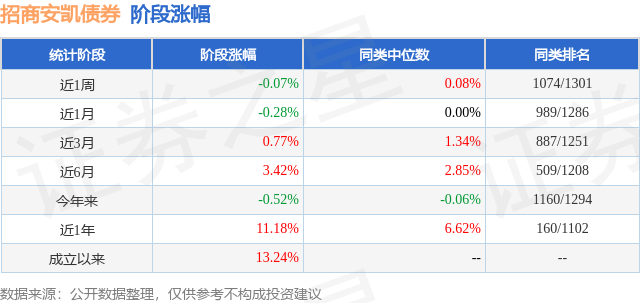 从业绩表现来看,招商安凯债券基金过去一年净值涨幅为11.38%,在同类基金中排名6/1063,同类基金过去一年净值涨幅中位数为4.0%。而基金过去一年的最大回撤为-1.57%,成立以来的最大回撤为-1.84%。
