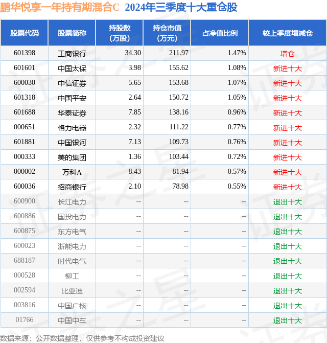 证券之星消息,日前鹏华悦享一年持有期混合C基金公布三季报,2024年三季度最新规模1.02亿元,季度净值涨幅为1.21%。