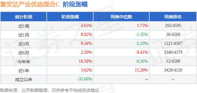 从业绩表现来看,富安达产业优选混合C基金过去一年净值涨幅为-10.97%,在同类基金中排名3784/3979,同类基金过去一年净值涨幅中位数为5.4%。而基金过去一年的最大回撤为-32.36%,成立以来的最大回撤为-49.57%。