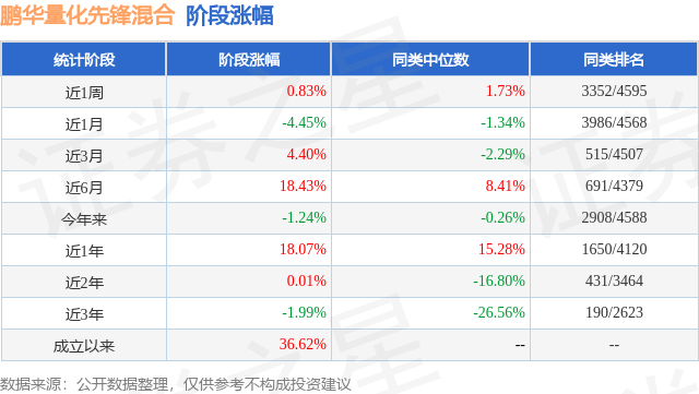 从业绩表现来看,鹏华量化先锋混合基金过去一年净值涨幅为6.46%,在同类基金中排名1860/3979,同类基金过去一年净值涨幅中位数为5.4%。而基金过去一年的最大回撤为-20.49%,成立以来的最大回撤为-33.47%。