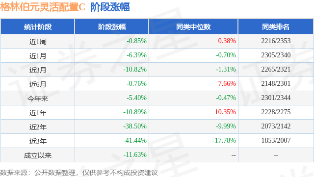从业绩表现来看,格林伯元灵活配置C基金过去一年净值涨幅为-18.28%,在同类基金中排名2237/2261,同类基金过去一年净值涨幅中位数为5.1%。而基金过去一年的最大回撤为-40.67%,成立以来的最大回撤为-60.99%。